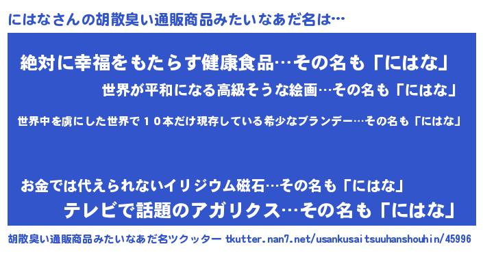 | ヘコむあだ名 | 『にはな(震え声)』『酢こんぶ』 |