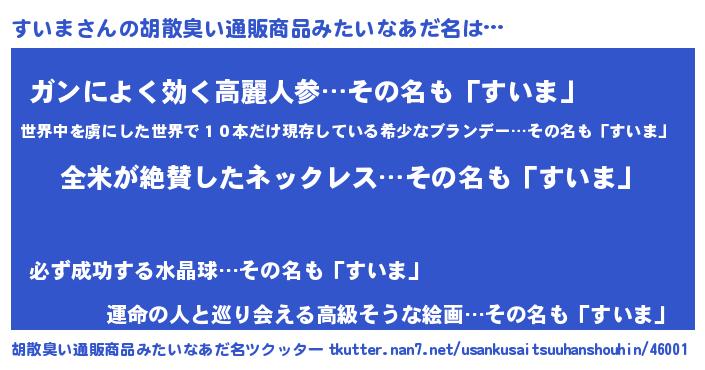 | 意味不明あだ名 | 『ニラ科すいま属』『自称すいま』 |