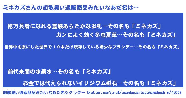 | ヘコむあだ名 | 『ミネもー』『ミネカズ(遠い目)』 |
