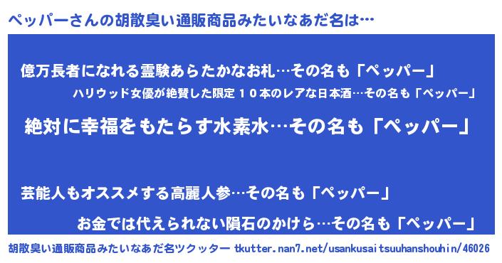 | ヘコむあだ名 | 『ペッパー(苦笑)』『ペッもー』 |