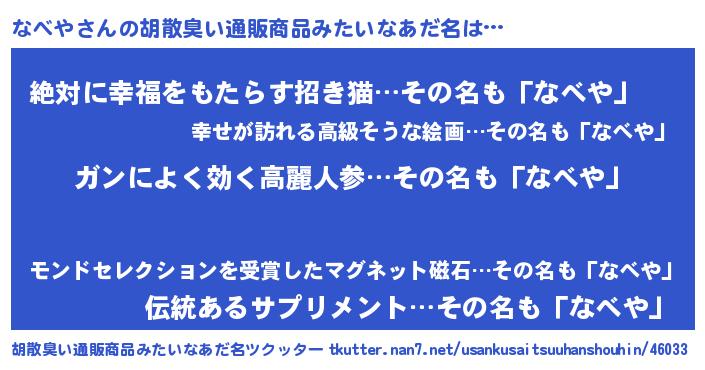 | ヘコむあだ名 | 『なべや(小並感)』『なべを』 |