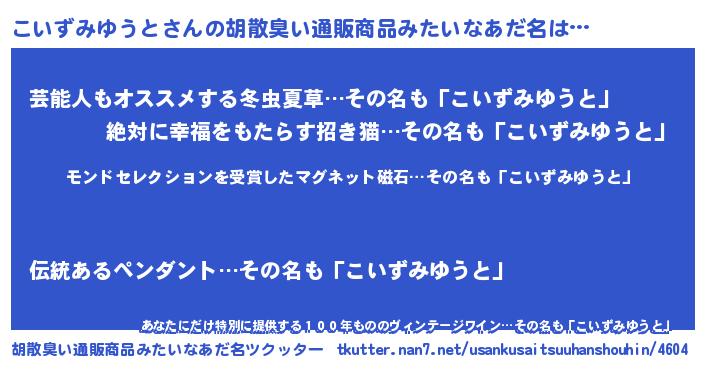 | 男性向けラノベタイトル風あだ名 | 『うちのこいずみゆうとが世界を掌握している!』 |