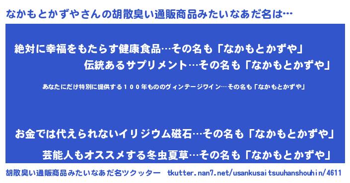 | 意味不明あだ名 | 『住所不定無職なかもとかずや(7歳)』 |