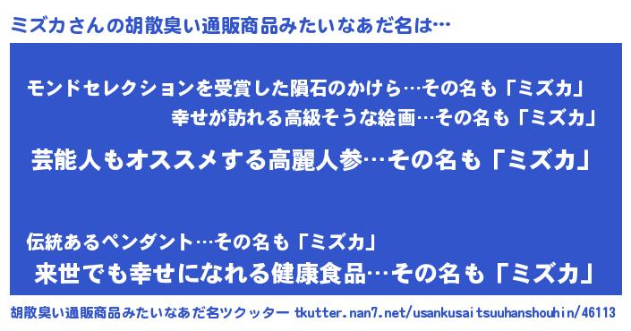 | ヘコむあだ名 | 『ミズカ(笑)』『レバニラ』 |