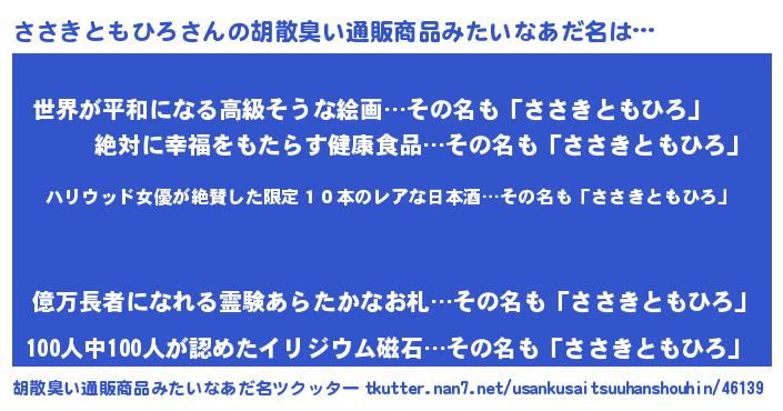 | 意味不明あだ名 | 『住所不定無職ささきともひろ(39歳)』 |