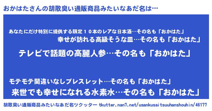 | 欧米人風あだ名 | 『ケンブリッジおかはた』 |