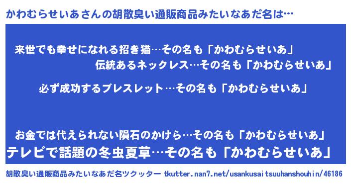 | 可愛いあだ名 | 『かんかん』『かわむらせいあママ』 |