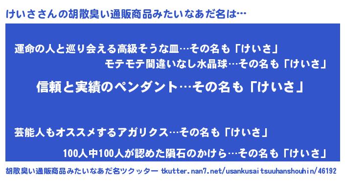 | 意味不明あだ名 | 『とにかく怪しいけいさ』 |