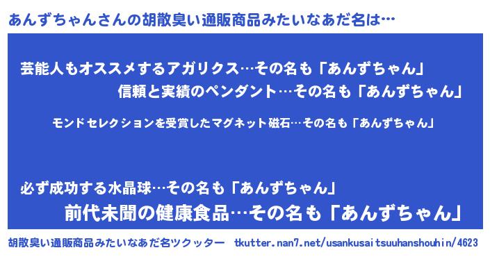 | ヘコむあだ名 | 『あんずちゃん(笑)』『あんっちょ』 |