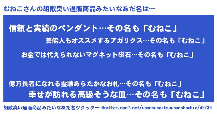 | 意味不明あだ名 | 『眠気覚ましガムむねこ味』『自称むねこ』 |