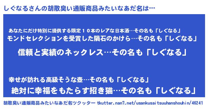 | 意味不明あだ名 | 『とにかく怪しいしぐなる』 |