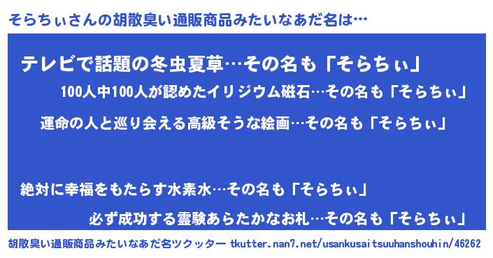 | 意味不明あだ名 | 『そらちぃフォーエバー』『自称そらちぃ』 |