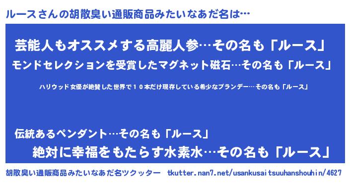 | 料理風あだ名 | 『ルースのカルパッチョ風』 |