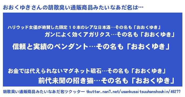 | ヘコむあだ名 | 『おおぷりん』『おおくゆき(爆)』 |