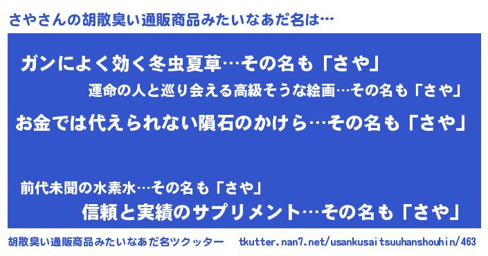 | 意味不明あだ名 | 『眠気覚ましガムさや味』『自称さや』 |