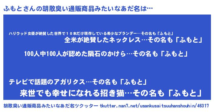 | ヘコむあだ名 | 『ふもと(遠い目)』『ふもっちょ』 |