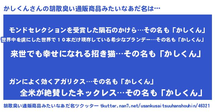 | 意味不明あだ名 | 『永久保存かしくん』『自称かしくん』 |