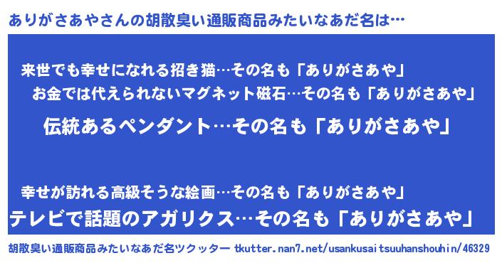 | 意味不明あだ名 | 『とにかく怪しいありがさあや』 |