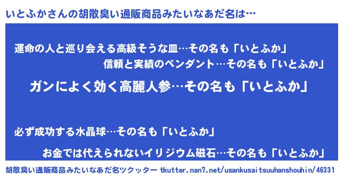| 意味不明あだ名 | 『しいたけ科いとふか属』『自称いとふか』 |