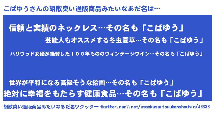 | 意味不明あだ名 | 『住所不定無職こばゆう(1歳)』 |