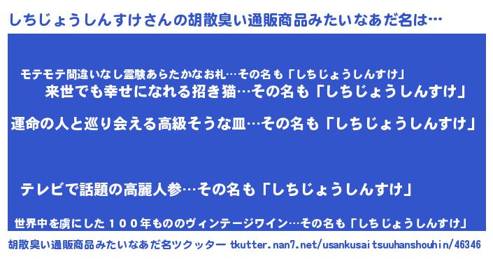 | 欧米人風あだ名 | 『しちじょうしんすけクリステル』 |