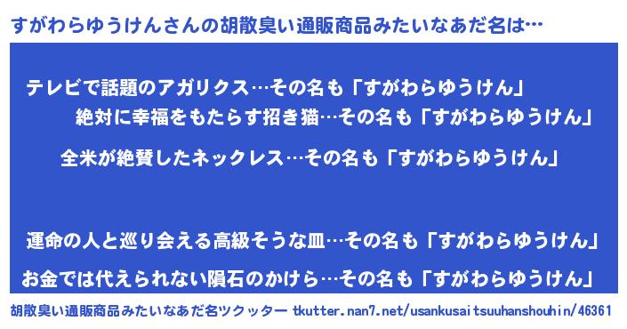 | 意味不明あだ名 | 『とにかく怪しいすがわらゆうけん』 |