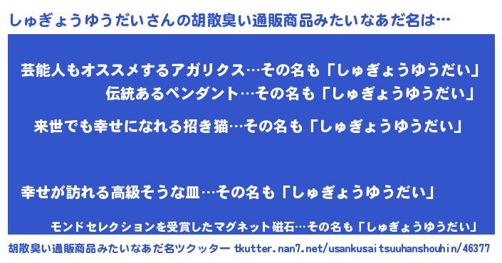 | 意味不明あだ名 | 『永久保存しゅぎょうゆうだい』 |