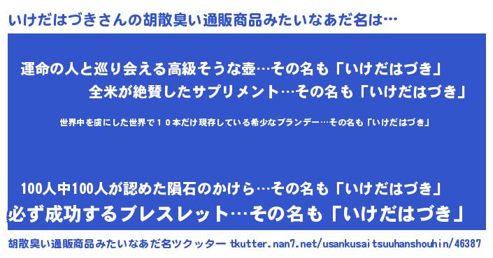 | ヘコむあだ名 | 『なまこ酢』『いけふぇ~』『いけを』 |