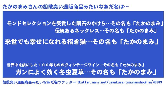 | 意味不明あだ名 | 『永久保存たかのまみ』『自称たかのまみ』 |