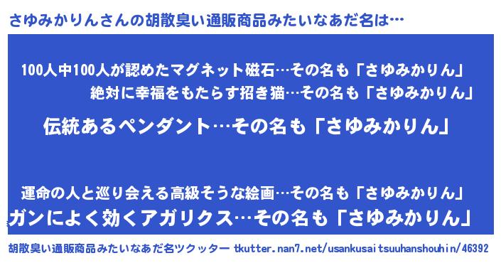 | ヘコむあだ名 | 『さゆぷりん』『さゆみかりん(笑)』 |