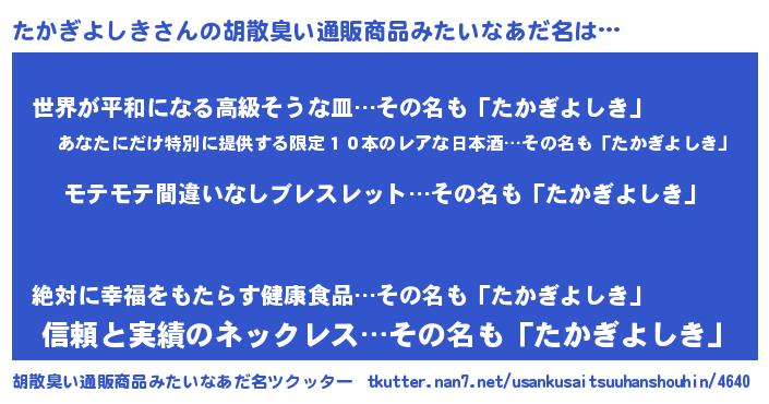 | ヘコむあだ名 | 『たかにー』『なまこ酢』『たかを』 |