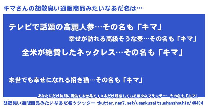 | ヘコむあだ名 | 『キマ太郎』『牛乳』『キマ(苦笑)』 |