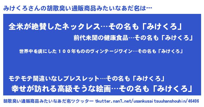 みけくろさんの胡散臭い通販商品みたいなあだ名をツクッター!