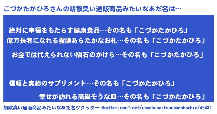 | 男性向けラノベタイトル風あだ名 | 『転生したらこづかたかひろだった件』 |