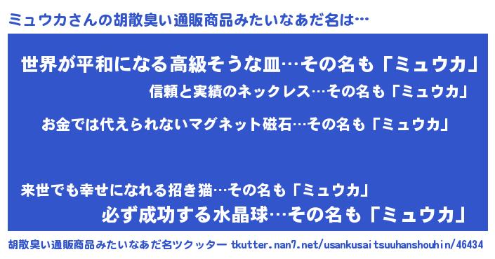 | ヘコむあだ名 | 『豆乳』『ミュもー』『ミュぷりん』 |