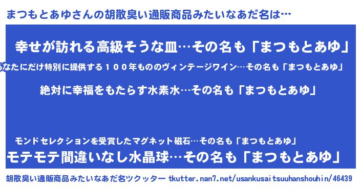 | ヘコむあだ名 | 『まつもとあゆ(震え声)』『つくし』 |