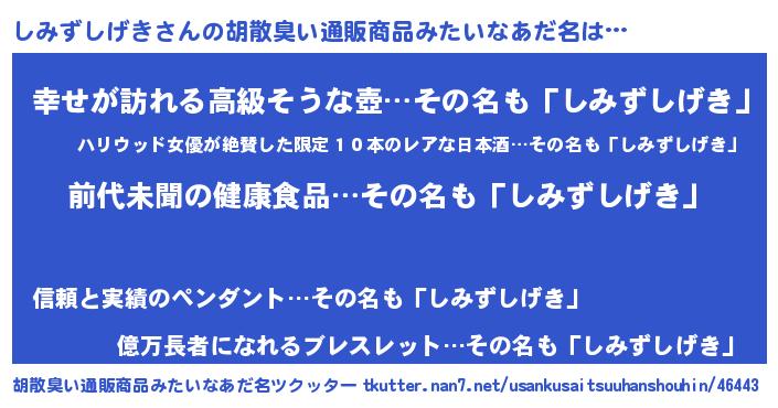 | ヘコむあだ名 | 『しみずしげき(笑)』『牛乳』 |