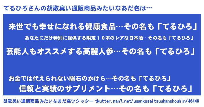 | ヘコむあだ名 | 『てるひろ(小並感)』『てる太郎』 |