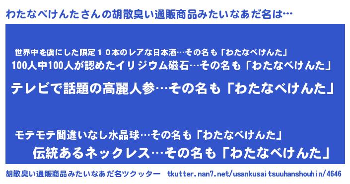 | 意味不明あだ名 | 『自称わたなべけんた』 |
