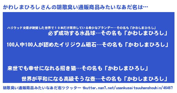 | 肩書あだ名 | 『かわしまひろし助手』 |