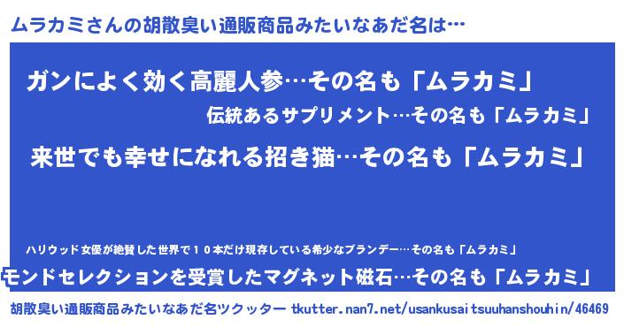 | 女子向けラノベタイトル風あだ名 | 『ムラカミの契約王妃』『ムラカミ恋絵巻』 |