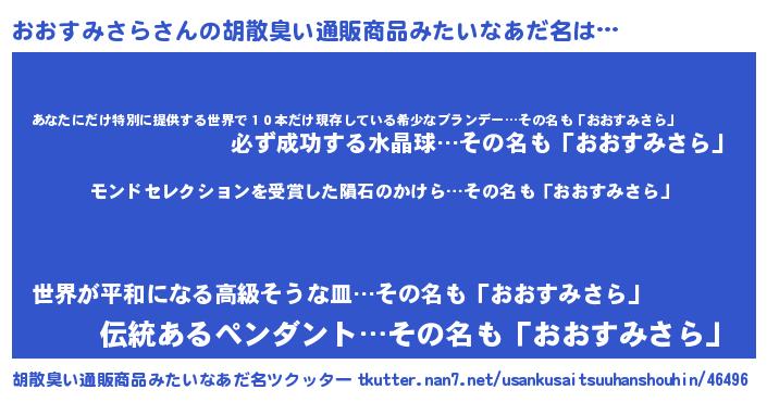 | ヒーロー風カッコイイあだ名 | 『慈愛の使者おおすみさら』 |
