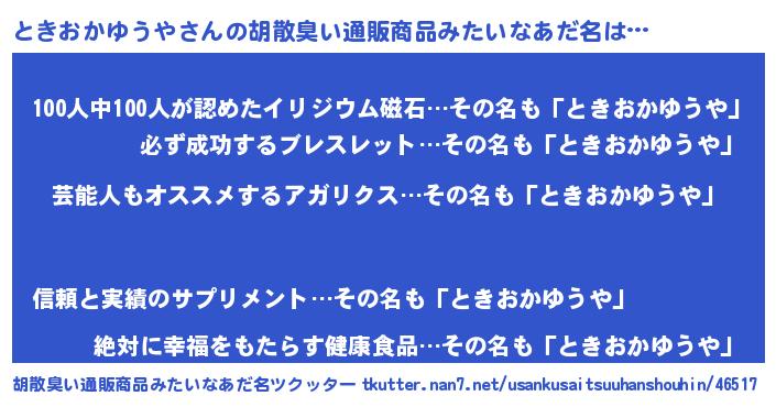 | 意味不明あだ名 | 『自称ときおかゆうや』 |