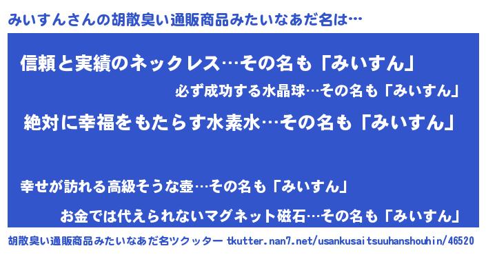 | 男性向けラノベタイトル風あだ名 | 『みいすんという概念が存在しない退屈な世界 』 |