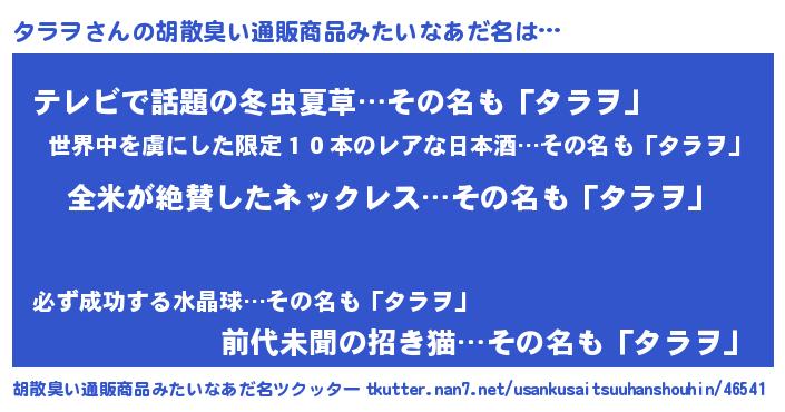 | 意味不明あだ名 | 『とにかく怪しいタラヲ』『自称タラヲ』 |