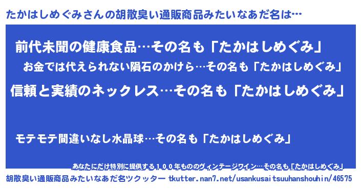 | 意味不明あだ名 | 『とにかく怪しいたかはしめぐみ』 |