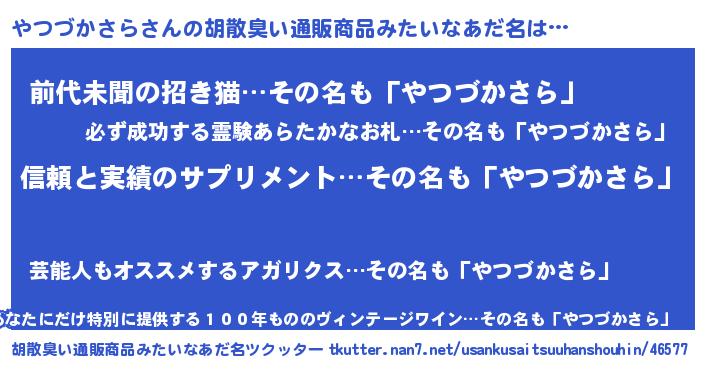 | 男性向けラノベタイトル風あだ名 | 『ダンジョンにやつづかさらを求めるのは間違っているだろうか』 |