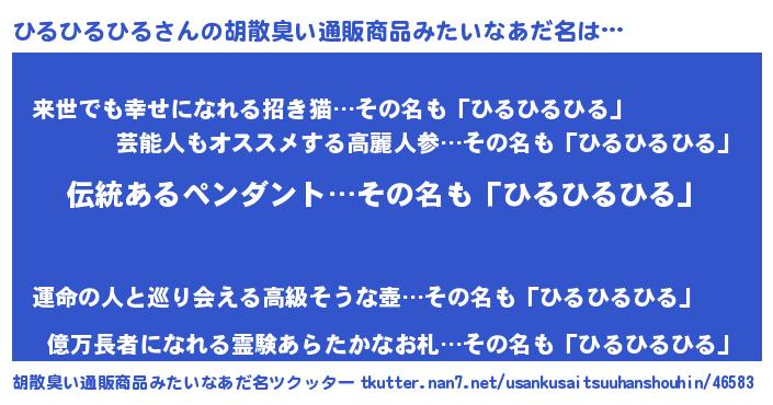 | 女子向けラノベタイトル風あだ名 | 『ひるひるひるの卵を拾いまして』 |