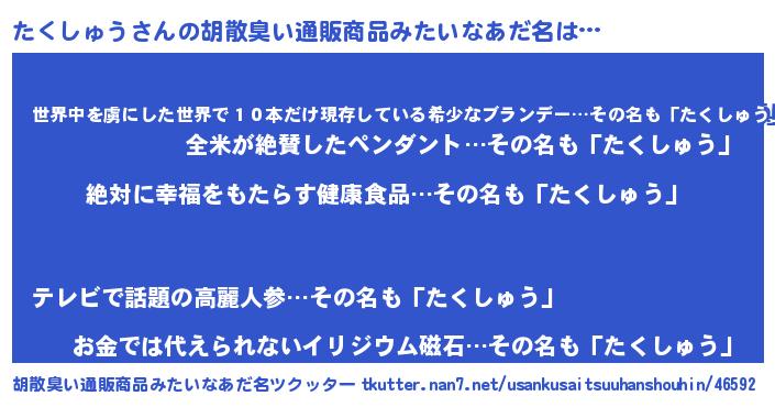 | 意味不明あだ名 | 『永久保存たくしゅう』 |