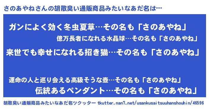 | 意味不明あだ名 | 『永久保存さのあやね』『自称さのあやね』 |